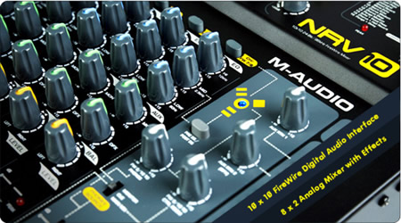 坚固的金属底盘加上可选购的机架固定件,NRV10可以与电脑配合使用也可以独立工作。NRV10使用了M-Audio获奖的Octane话放的技术,确保最佳的音质。NRV10一共有4个单声道通道和4个立体声通道-前4个通道提供带幻象电源的卡侬话筒输入接口。这款调音台设计了很多你在专业调音台上才能找到的功能,例如平衡的输入,用于线路处理的断点插入接口,2个Aux总线,3段均衡,灵活的监听源选择。NRV10内置硬件效果器,具有16个常用的效果参数,这样可以减少电脑CPU的负担,这在现场和排练的时候是非常方便的。