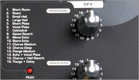 内置16个数字效果,可减轻电脑CPU负担,信号,Mute,Peak显示,可选踏板输入